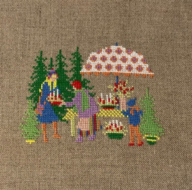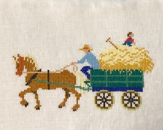 森の花屋はグリーティングカードの作品で、働く馬はフランスのDMCの冊子と日本で発売されていたDMCの本に掲載されていた作品です。