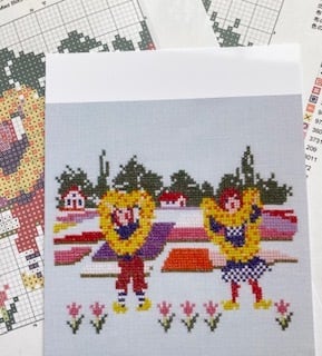 写真用フレームに入れて立てておくとステッチの際にチェックしやすいです。